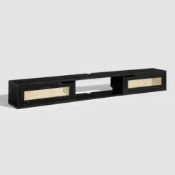 Modern Boho Floating TV Stand For TVs Up To 80″ With Rattan Doors Black – Saracina Home