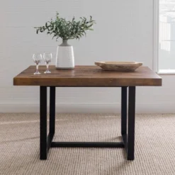 52″ Modern Farmhouse Solid Wood Distressed Plank Top Dining Table – Saracina Home