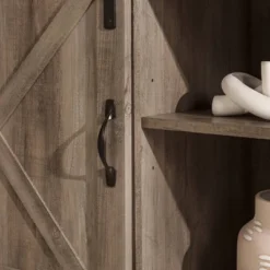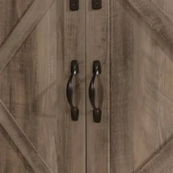 Saracina Home’s Clarabelle Double Sliding X Barn Door 70” TV Stand is the homey farmhouse pick-me-up you’ve been looking for. Two sliding X-front barn doors give you the freedom to choose what’s on display and what stays out of sight. Place media components, books, and decorations on any of the three adjustable shelves, and keep cables organized with the convenient cord management ports. Strong powder-coated steel hardware and accents add just the right amount of rustic finesse to the piece. The low profile makes for a down-to-earth silhouette that looks just right as a living room storage console or even a dining room sideboard.