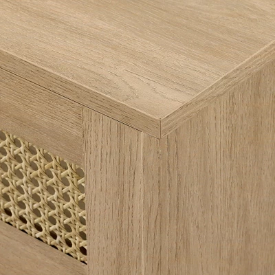 Modern Boho Floating TV Stand For TVs Up To 80" With Rattan Doors Coastal Oak - Saracina Home - Image 6