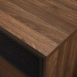 Modern Industrial Metal Mesh Sliding Door TV Stand For TVs Up To 80″ Dark Walnut – Saracina Home