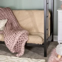 Your kids need more space in their bedroom, or they’ve outgrown a boring set-up. Revamp the fun and add some smart space design with Saracina Home’s Kids Twin Over Futon Bunk Bed. Its innovative, powder-coated steel frame allows for a transformative, versatile bedroom bed frame. Incorporated ladders and a lower futon mitigate bulk, while wrap around safety guardrails keep your little sleepers safe and sound. Your kids will enjoy the coolest sleepovers, video game nights, or sibling hangouts as the lower futon frame doubles either as an extra bed, or a cool couch! And best of all, metal slats mean no box springs are required. So, welcome home a nifty, space-saving bedroom makeover and enjoy the renewed, fun atmosphere.